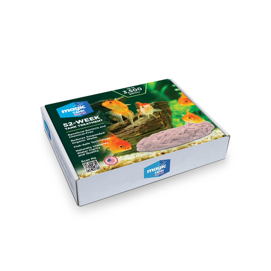 To ensure maximum efficacy, check the Magic Tank Rock every month to make sure it is not clogged with debris, such as fish food or waste. If it becomes clogged, simply remove your Magic Tank Rock and gently clear away the debris by hand or with a soft bristle brush. Magic Tank Rock can chip and crack if scrubbed too vigorously, but this will not interfere with its ability to work. However, do not let Magic Tank Rock freeze, as that can cause the rock to disintegrate and reduce its effectiveness.